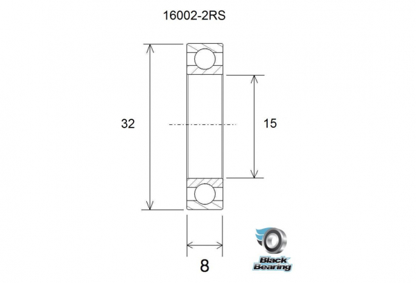 Roulement à billes BLACK BEARING B3 16002 2RS vendu à l’unité.Dimensions : 15 x 32 x 8 mm