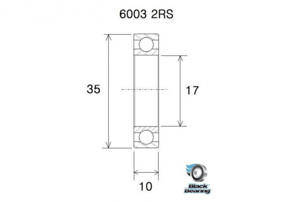 Roulement à billes BLACK BEARING B3 6003-2RS vendu à l’unité.Dimensions : 17 x 35 x 10 mm