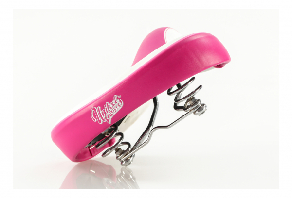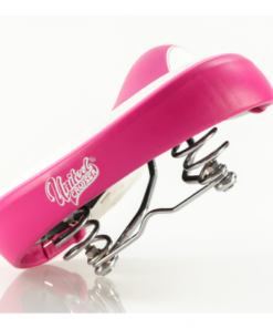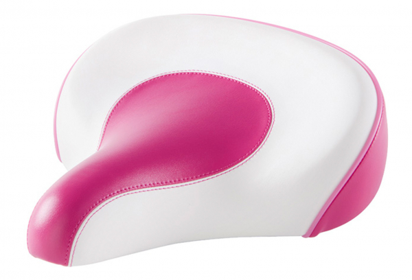 Selle large et confortable type Beach Cruiser, taille XL, ultra confortable. Son amortissement se fait à l’aide de tampons elastomers et son ergonomie caractéristique lui confère un confort inimitable. Le revètement en simili-cuir bicolore blanche et fuschsia, offre un très joli design et permet un entretien facile. Une selle funky et au top pour qui cherche le compromis parfait entre le look, le confort et l’agrément.