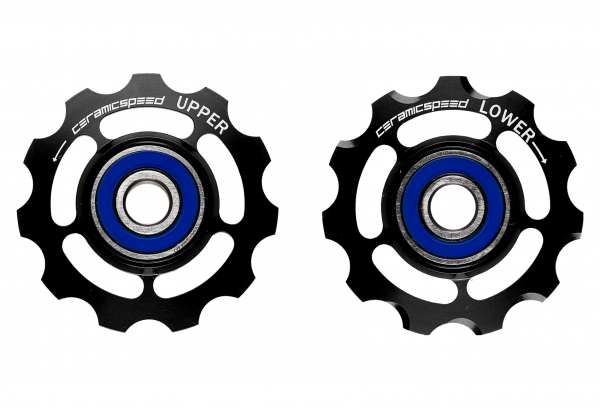 Les galets en aluminium usinĂ© avec roulements standard, se composent de billes CeramicSpeed ​​d’origine installĂ©es dans une cage en acier trempĂ©, Â