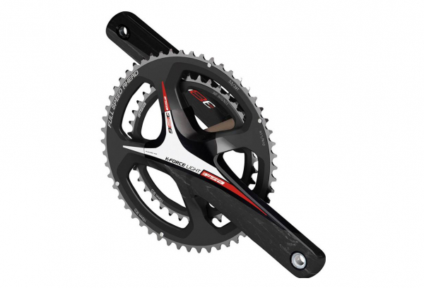 Pédalier FSA K-Force L route double constitué de manivelles en carbon pour un gain de rigidité et un transfert de puissance optimal.