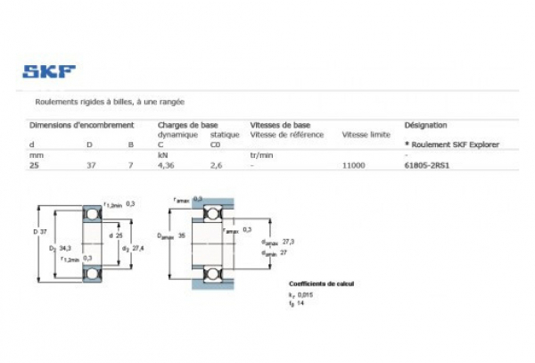 Roulement à billes SKF explorer 61805-2RS1 / 6805-2RS vendu à l’unité.Dimensions : 25 x 37 x 7 mmLes références 61805-2RS1 et 6805-2RS1 désignent le même roulement.L’appelation actuelle est 61805-2RS1 et remplace l’ancienne référence 6805-2RS1.